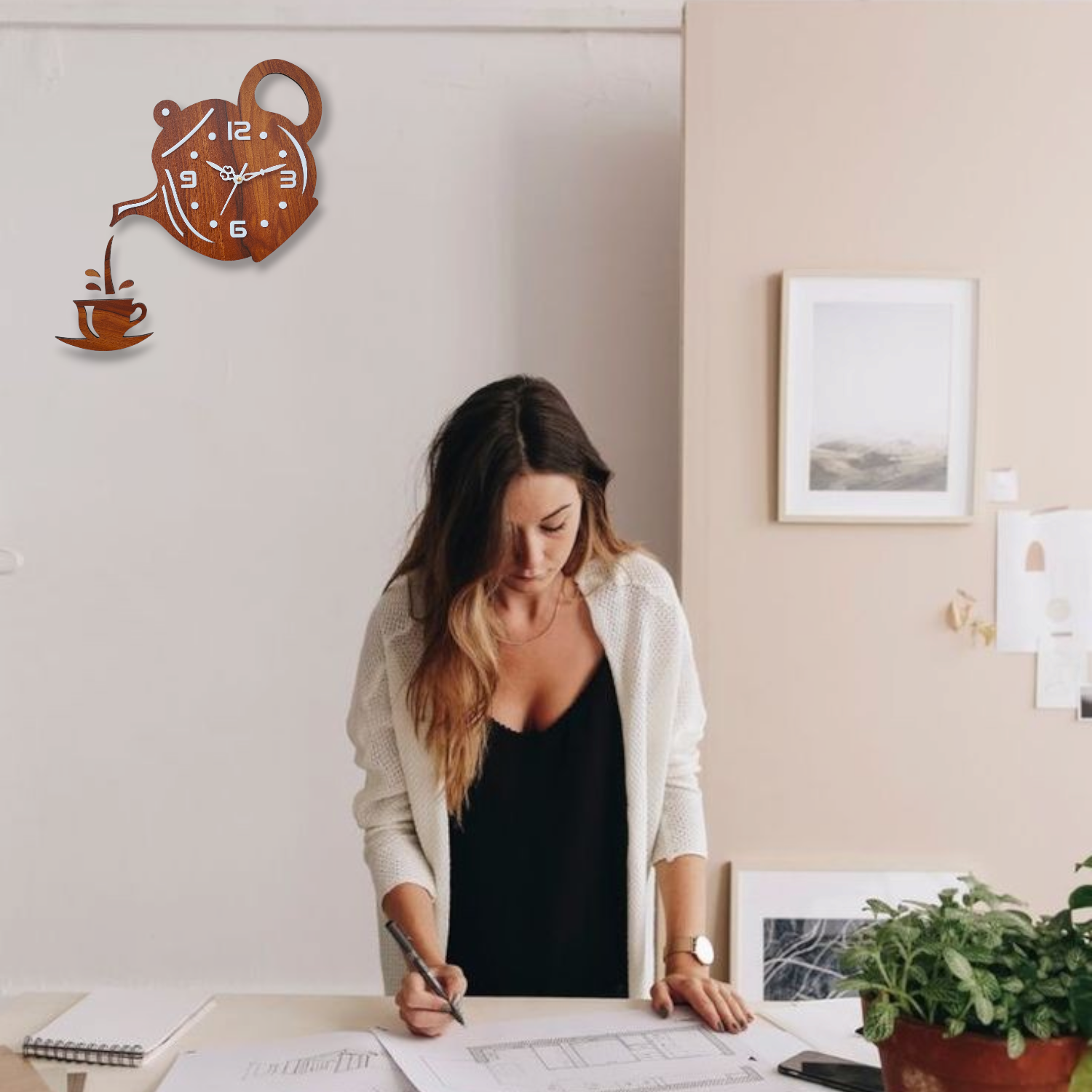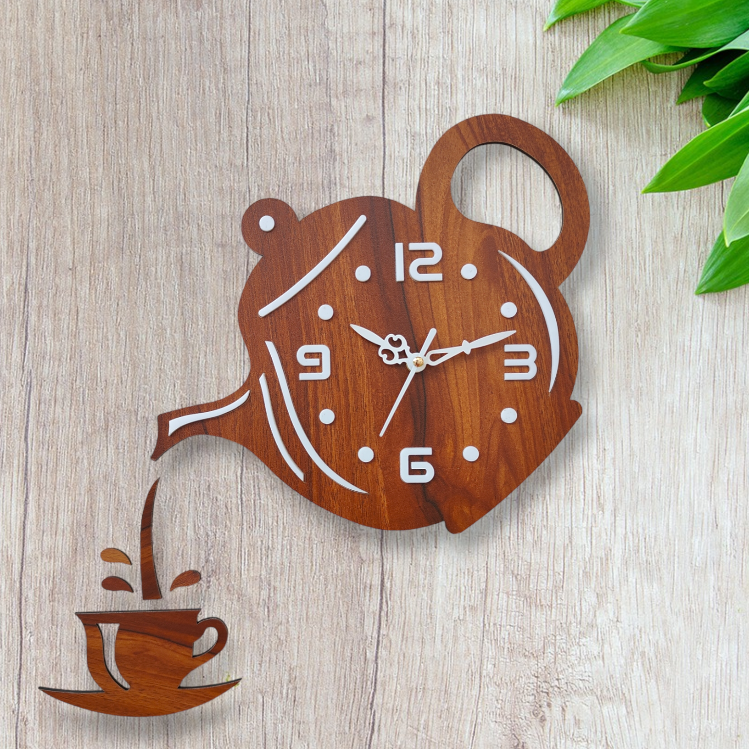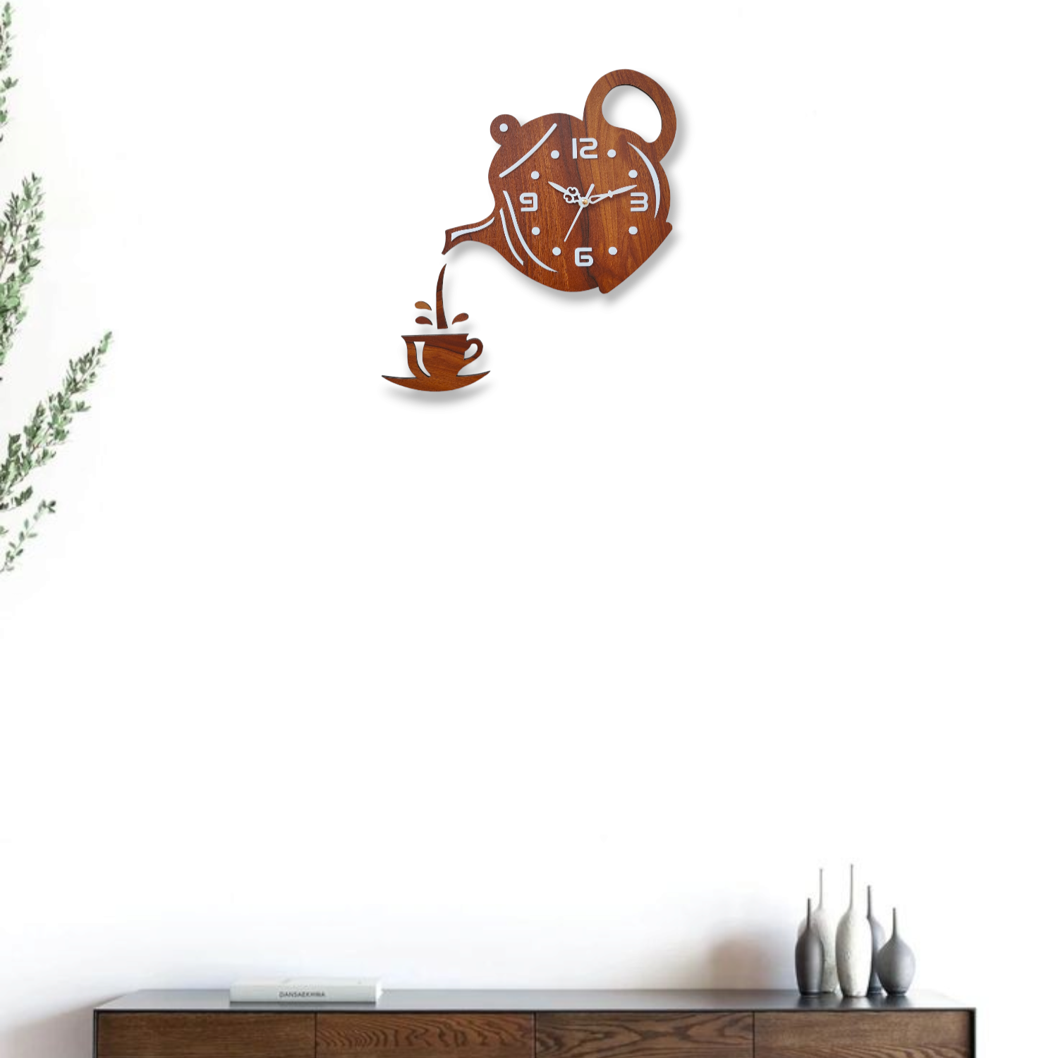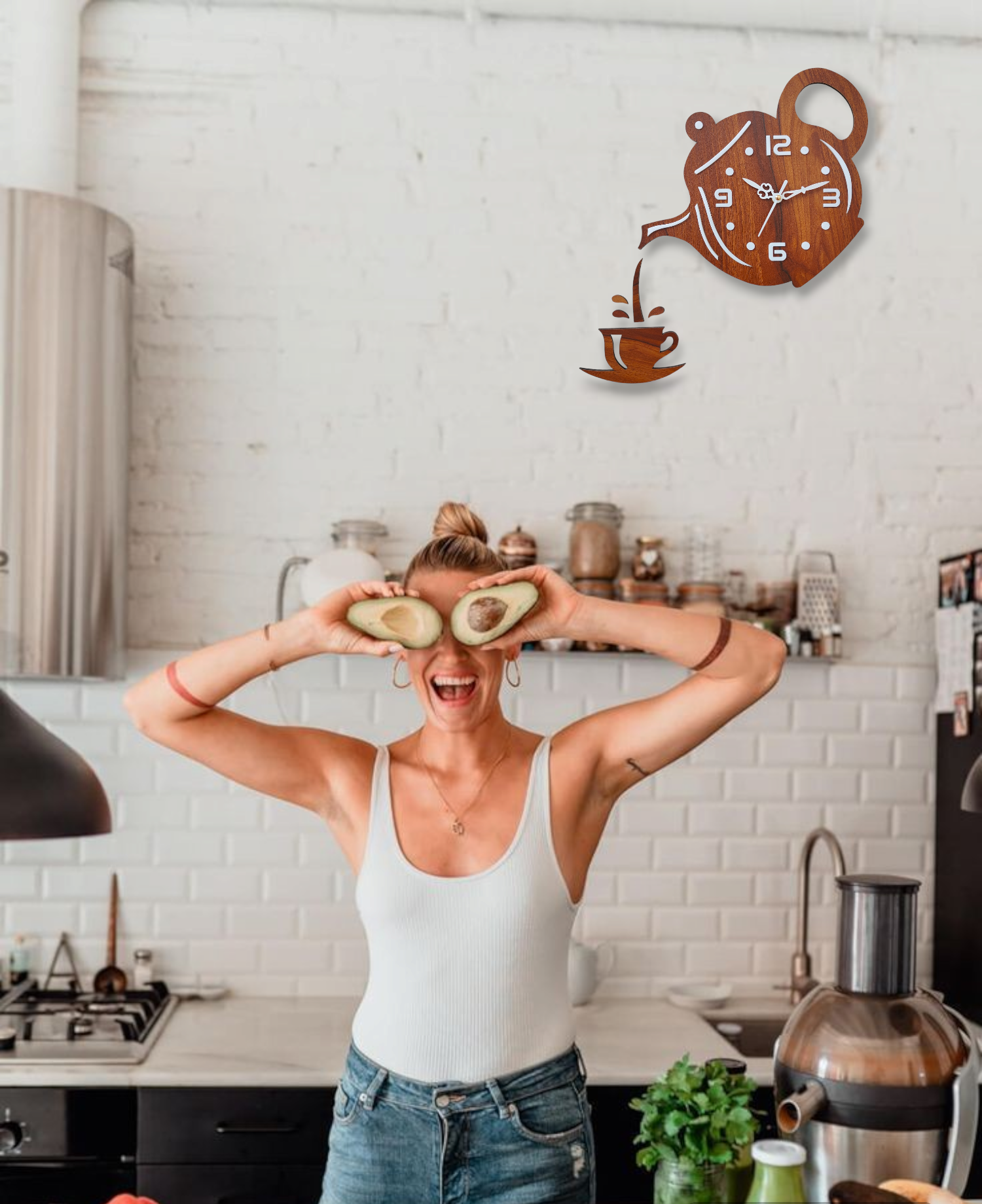 The clock face is expertly handcrafted, ensuring a high level of quality and attention to detail. Its timeless design and rich wood finish will complement any kitchen decor, whether modern or traditional.