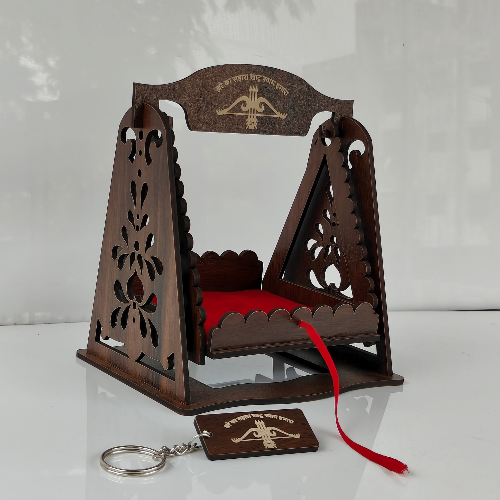 Bring home this special laser-cut swing for your beloved Khatu Shyam Baba. Its marvelous texture and design provide a perfect place for His divine presence, adding a new dimension to your devotion.