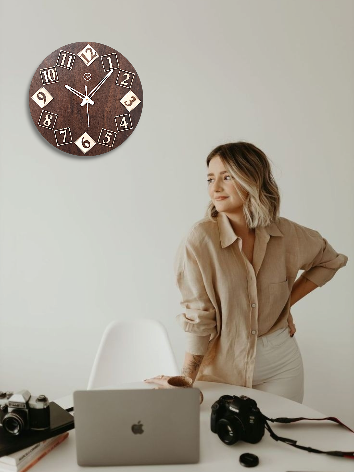 Placed near plants or in a nature-inspired corner, this wooden clock creates a calm and refreshing environment, adding charm to your space.