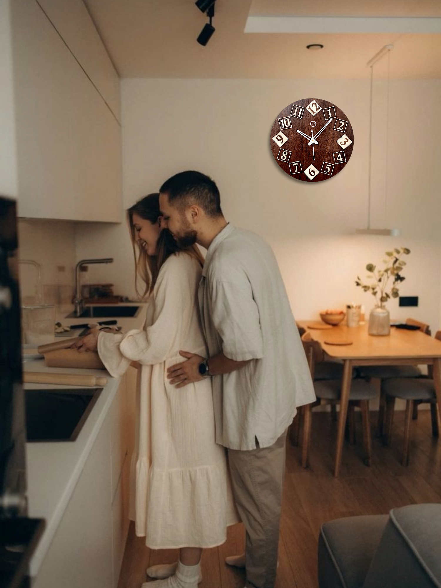 Enhance your kitchen or dining area with this clock, adding warmth and a cozy homey vibe. Its unique design complements the inviting atmosphere of your space.