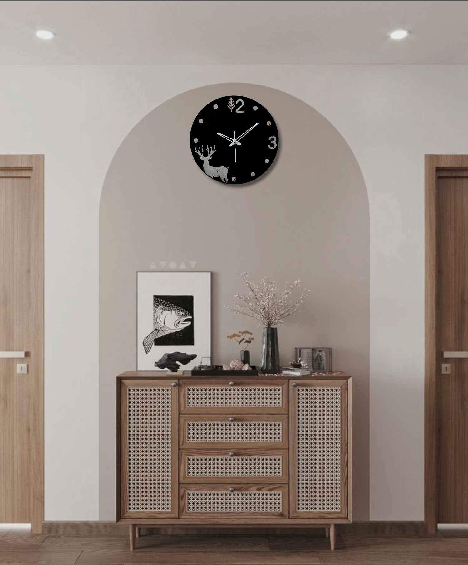 - wall clock, rustic clock, deer clock, forest clock, non-ticking clock, silent clock, wall decor, home decor, woodland decor