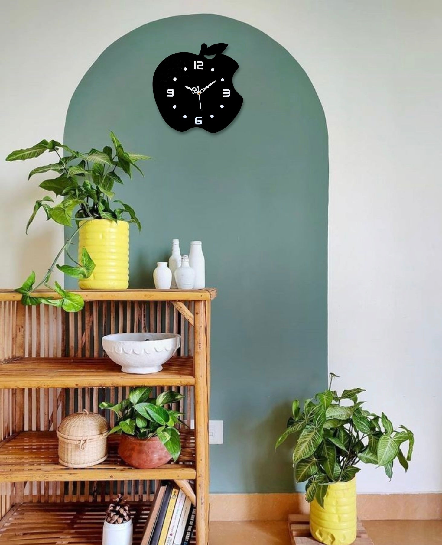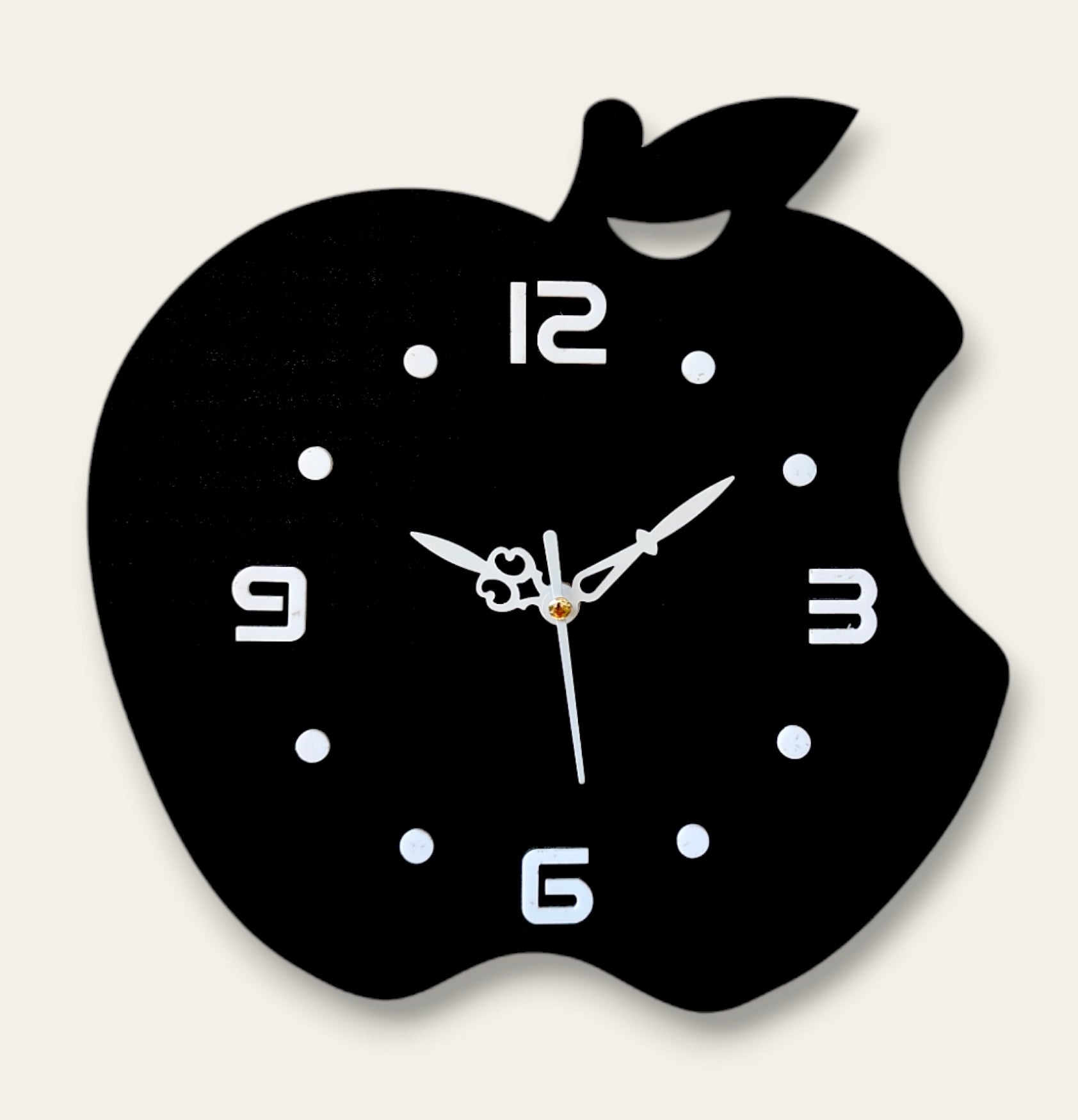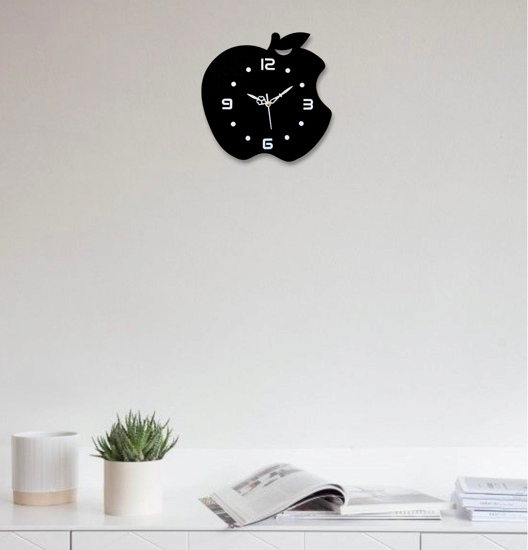 Add a touch of contemporary style to your home with our sleek black apple wall clock. This unique timepiece features a minimalist design with a bold, black silhouette of an apple. The clear, white numbers and hands provide easy readability, while the quiet, non-ticking movement ensures a peaceful environment.