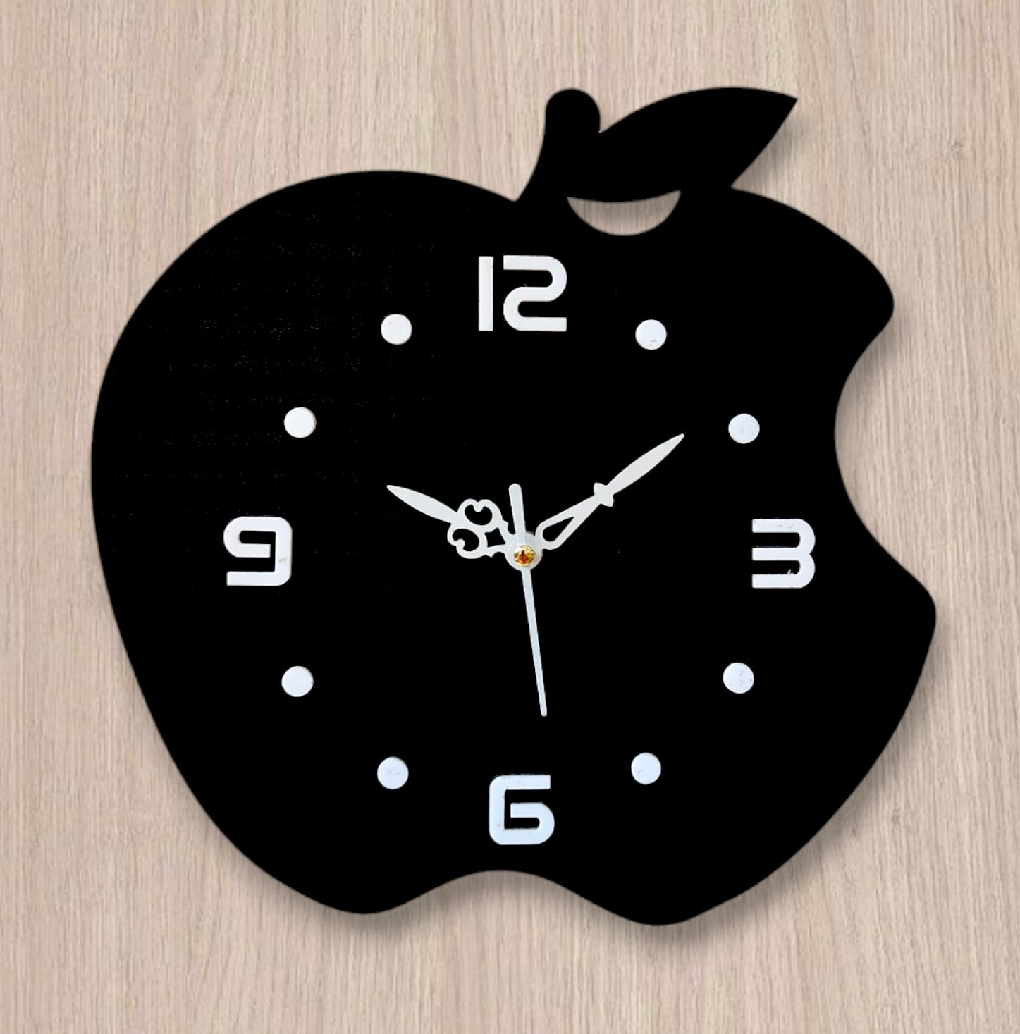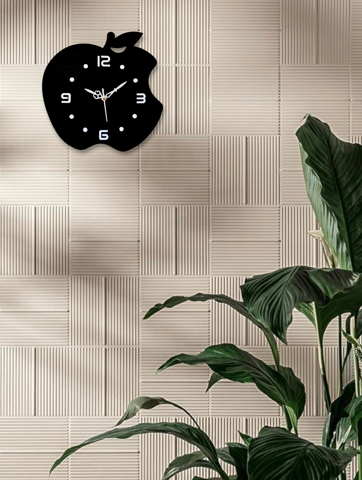 Sleek Black Apple Wall Clock - Modern Home Decor