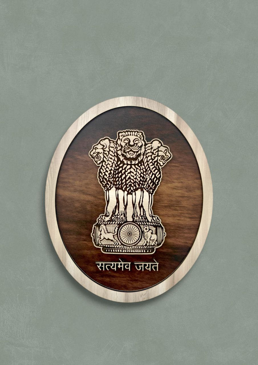 This elegant wall art showcases the iconic Indian Emblem, intricately carved onto a circular wooden base. The emblem, featuring the majestic lions and the motto "Satyamev Jayate" (Truth Alone Triumphs), is a symbol of India's national pride and unity. This handcrafted piece is a perfect addition to your home or office, adding a touch of Indian heritage and cultural significance.